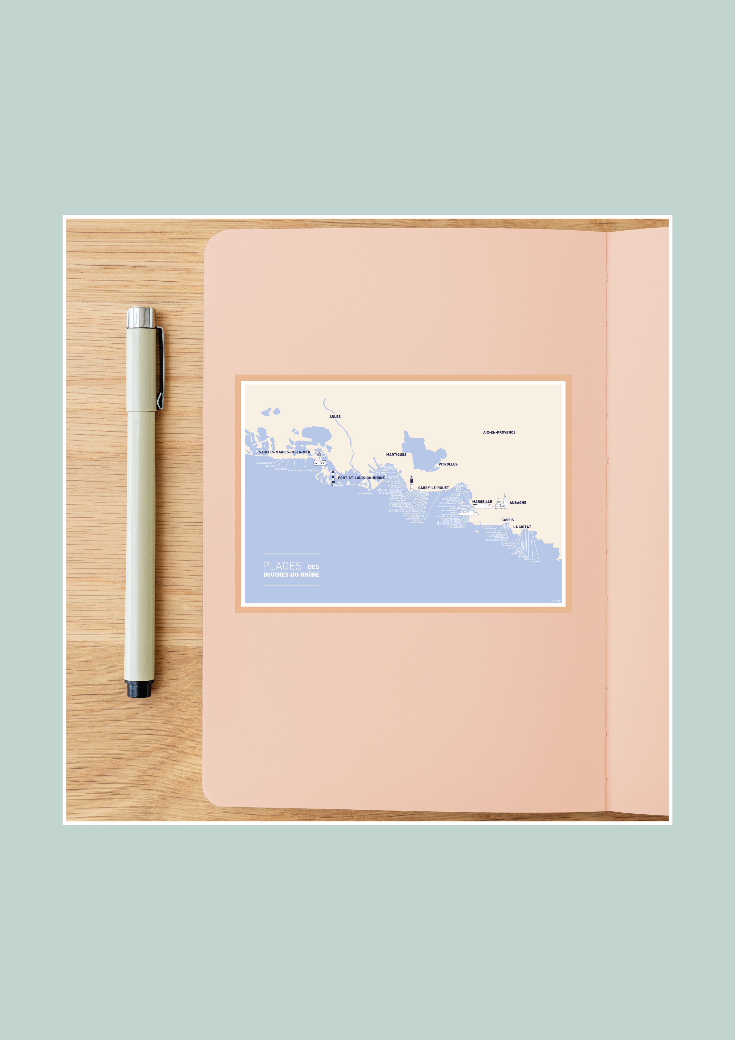 Carte des plages des Bouches du Rhône Affiche A3 Carte postale