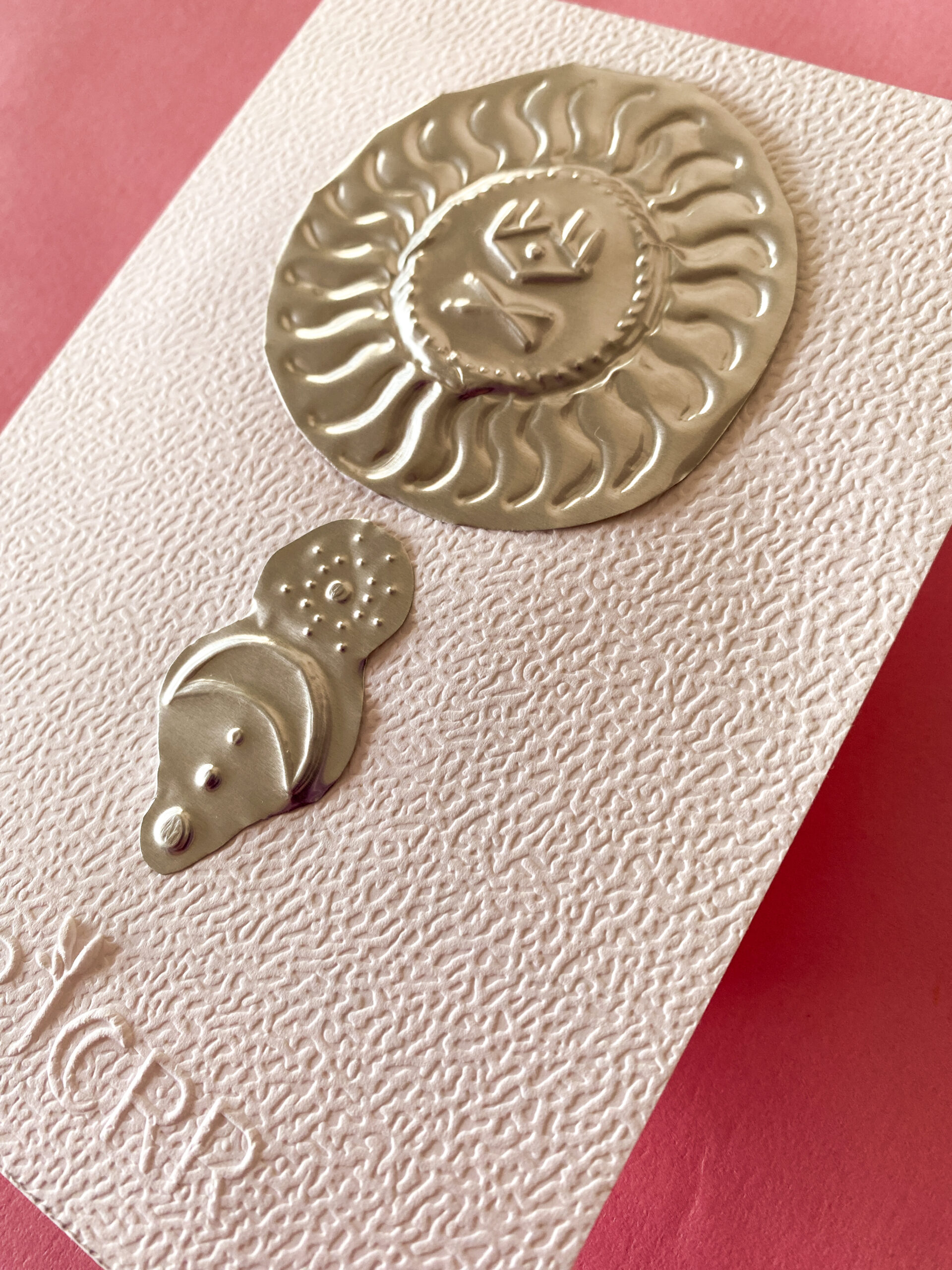Gravure sur métal à repousser argenté
