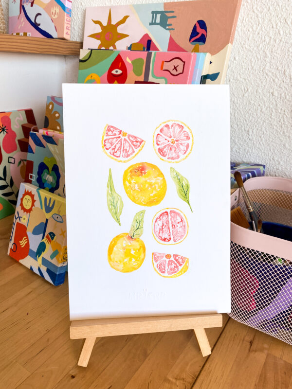 Peinture aquarelle originale Pamplemousses pour décoration murale